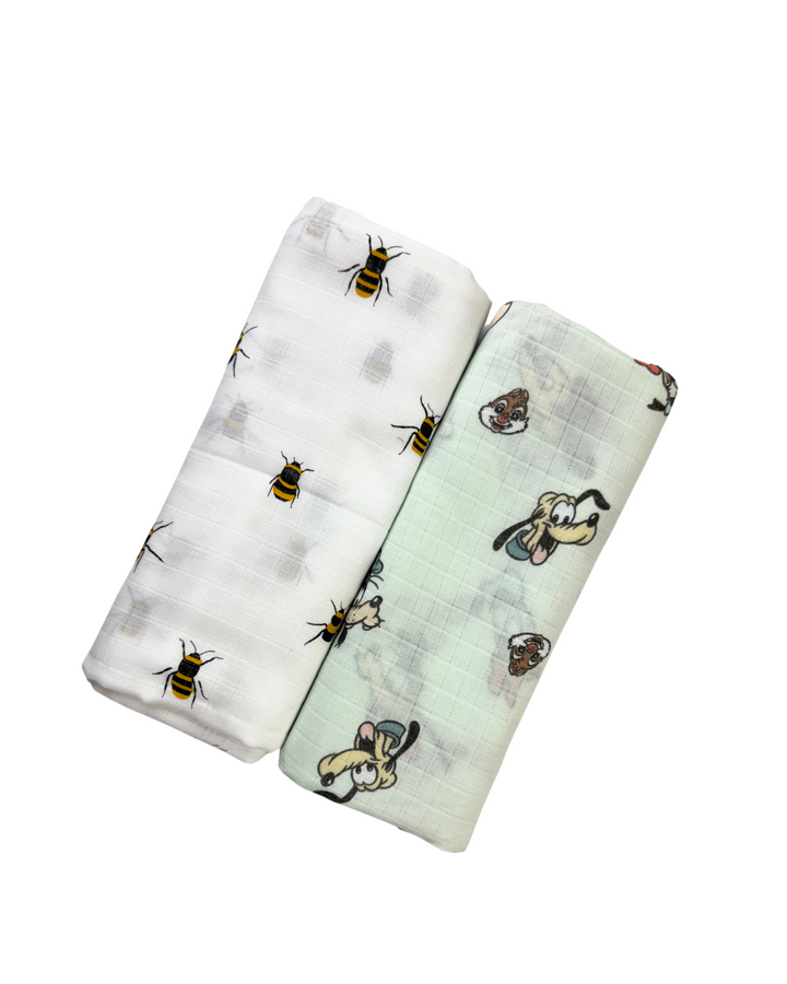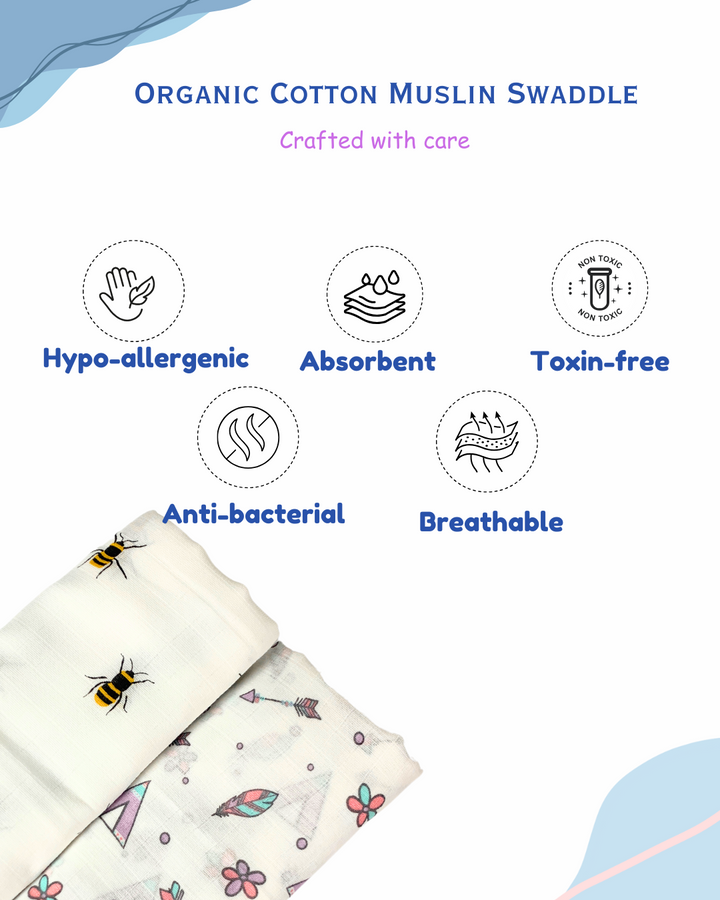 Cotton Muslin -Honeybee Print Swaddle Wrap for New Born Baby Boy and Girl, Soft Swaddle Cloth for New Born, New Born Swaddle, Size 75 cm*150 cm-Pack Of 2