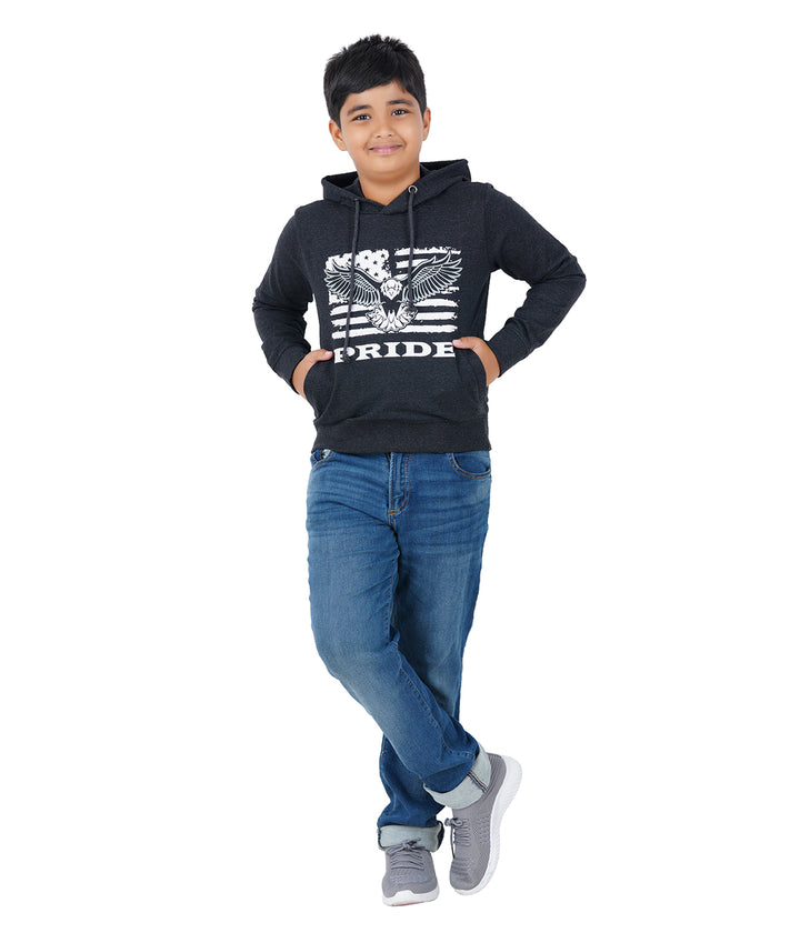 Kids Cotton Hoodie Print Sweatshirt Black