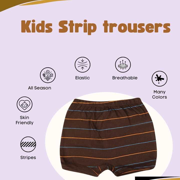 Striped trousers can also come in shorter styles like striped shorts, especially for warmer weather.Many kids’ striped trousers come with elasticized waistbands or adjustable drawstrings to ensure a comfortable and secure fit, especially as kids grow.