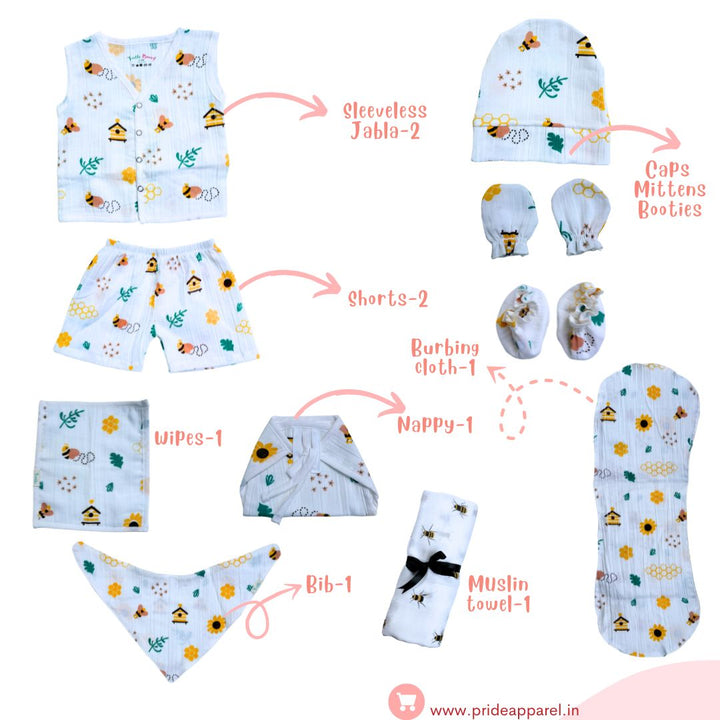 Premium Newborn Baby Combo Set – Soft Cotton Jabla, Nappy, Cap, Mittens, Booties, and Burp Cloth – Perfect for Gifting & Daily Use