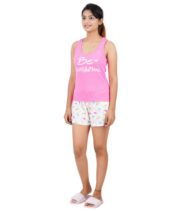 Pride Apparel Women's Cotton Tank Top with Shorts Night Wear/Lounge Wear